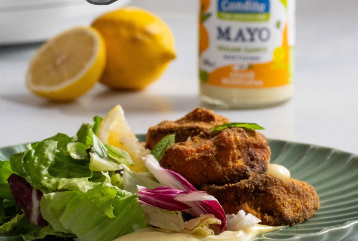 RECIPECrispy-Crusted Mushrooms with Mayo Vegan Sauce PREPARATION TIME: 10′ COOKING TIME: 10′ Ingredients: 600g mushrooms, cut into large chunks For the batter: 2 tbsp Condito The Green Line Mayo Vegan...
