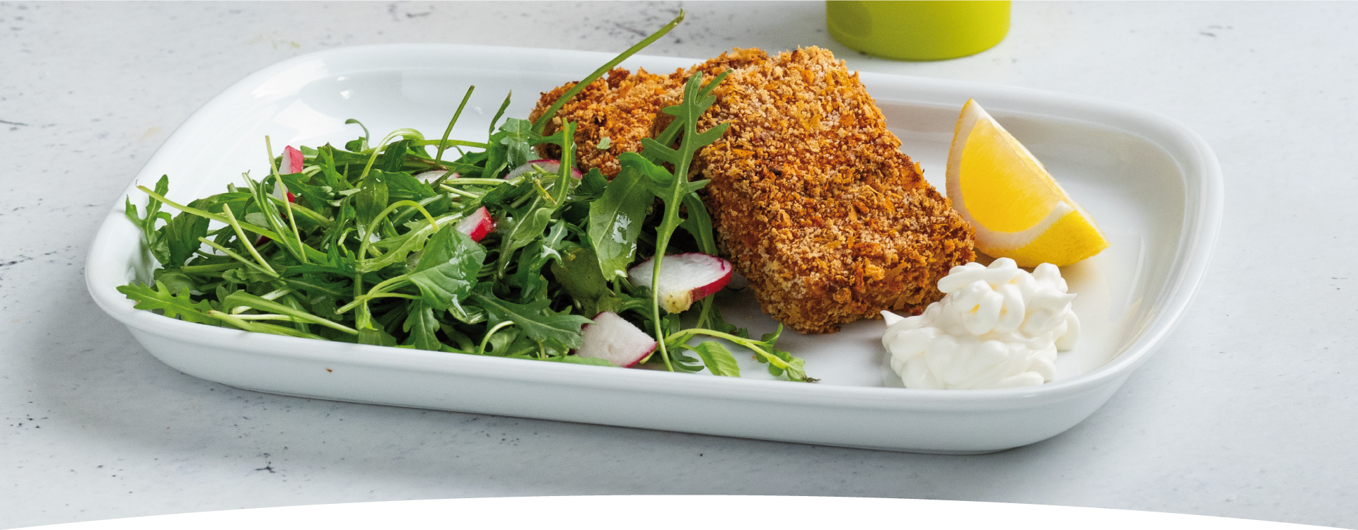 Ψήνουμε στο air fryer στους 180°C για περίπου 12 λεπτά, μέχρι να αποκτήσει χρυσή και τραγανή κρούστα. Μόλις είναι έτοιμα συνοδεύουμε με πράσινη σαλάτα και επιπλέον Mayo Vegan Sauce στο πλάι.