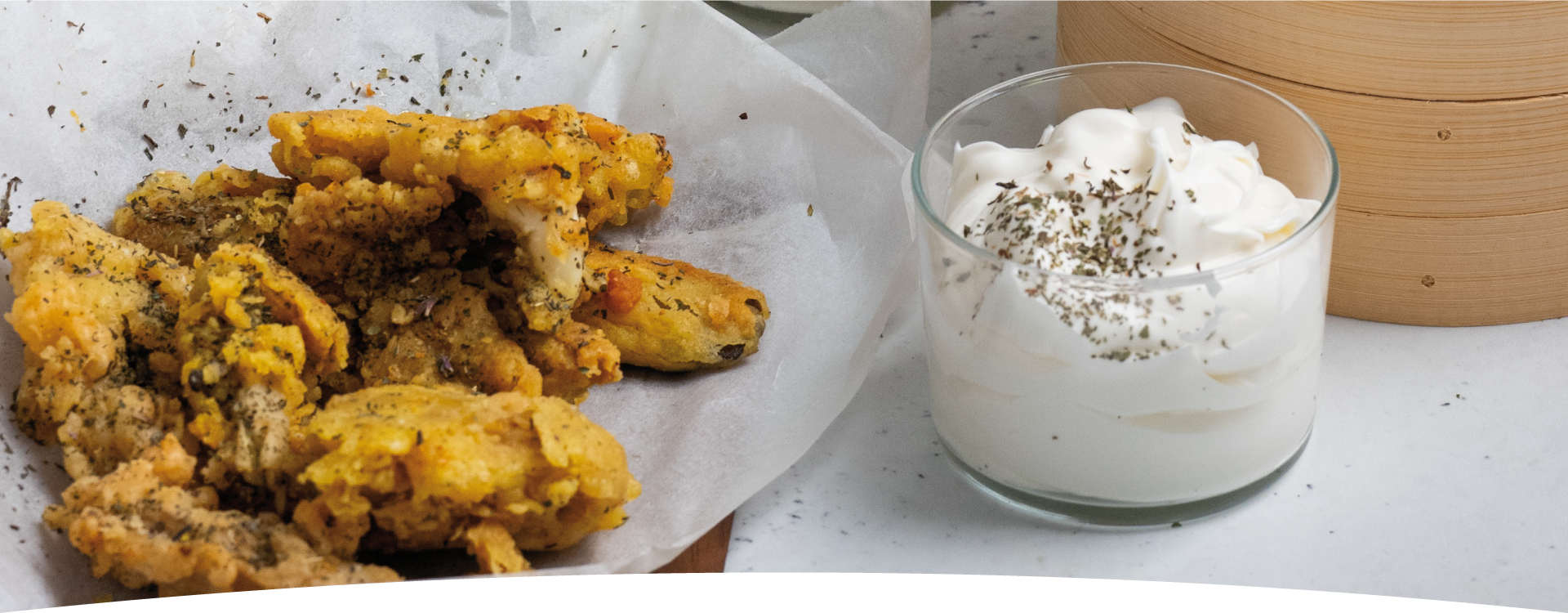 Place the fried mushrooms on paper towels to absorb excess oil. Sprinkle with dried oregano and serve with Mayo Vegan Sauce on the side.